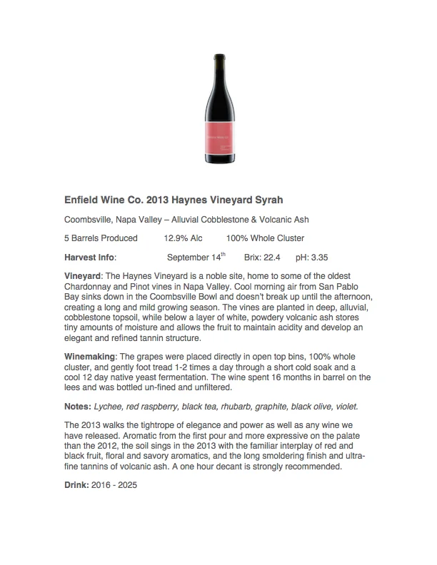 “When I started Enfield it wasn’t intended to be more than a side project,” says Lockwood. “It was an avenue for me to explore my winemaking knowledge and to start making the kinds of wines that I knew I wanted to make from vineyards that I thought really had untapped potential.””