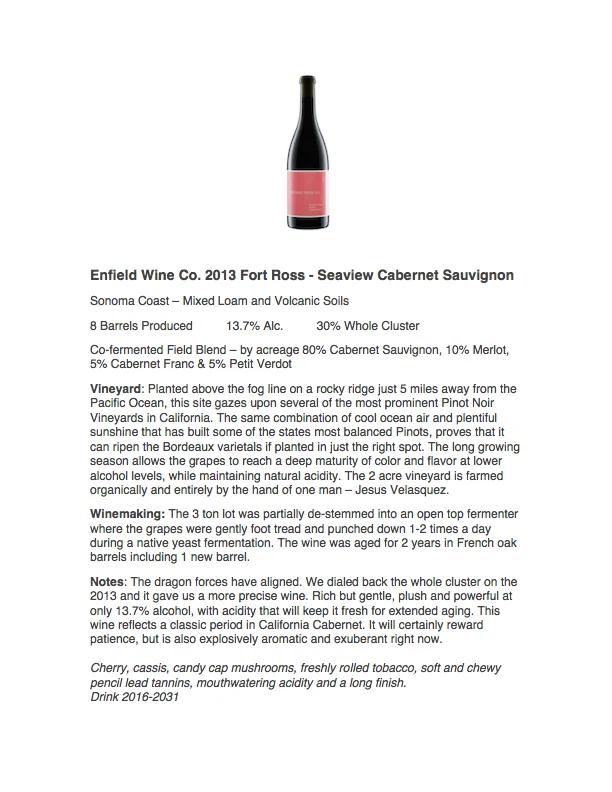 w/ 2013 Fort Ross - Seaview Cabernet Sauvignon