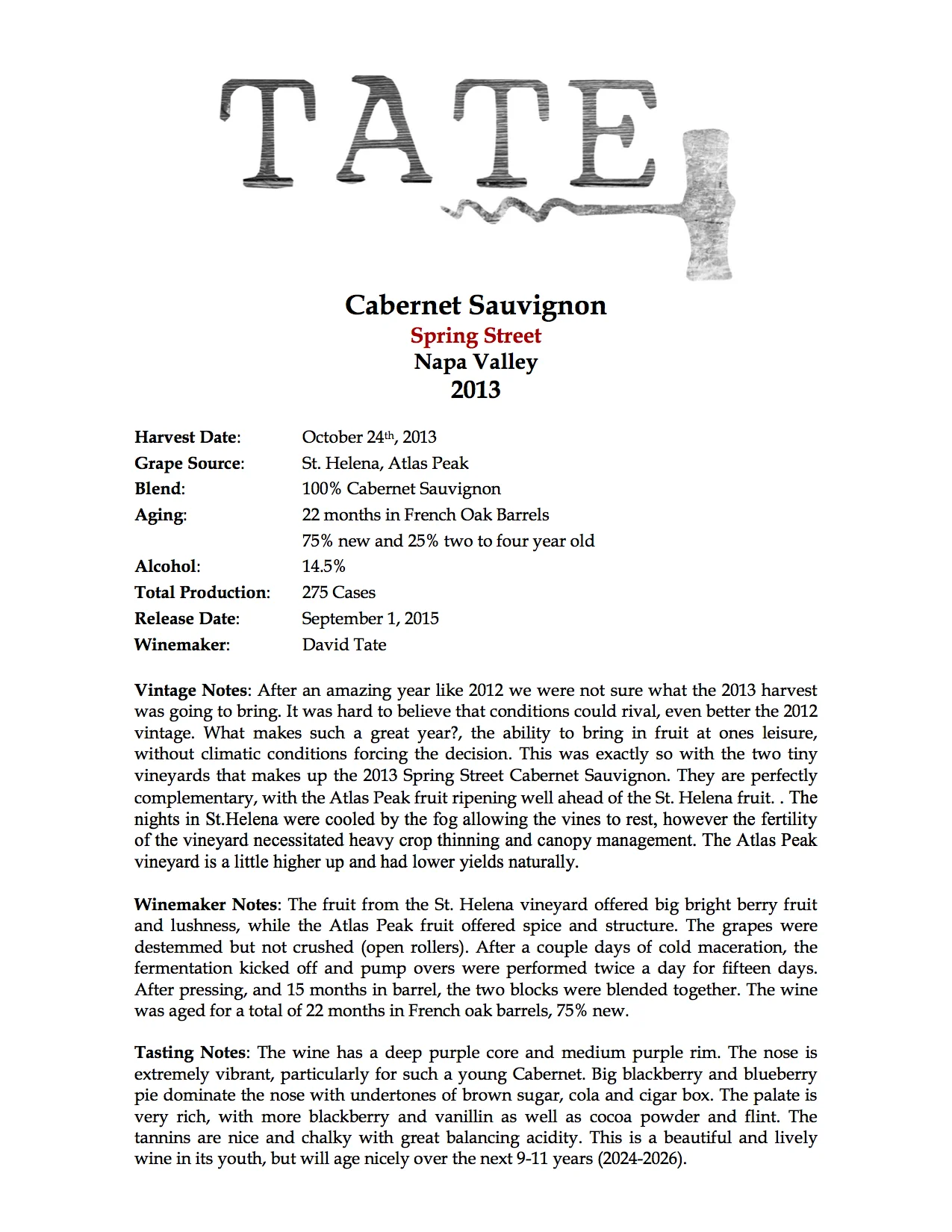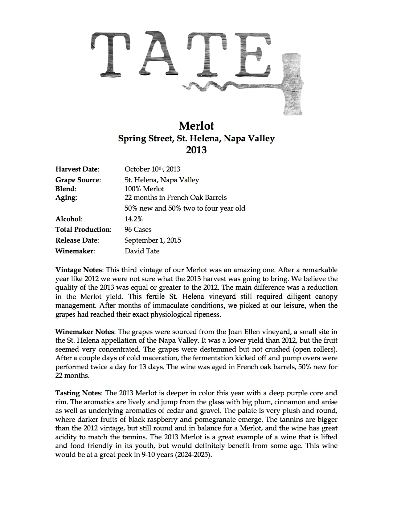 w/ 2013 Spring Street Merlot, St. Helena